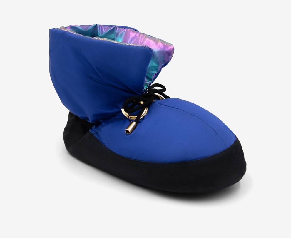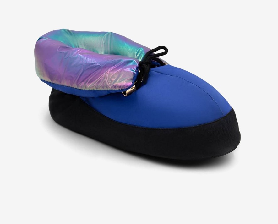 Step up your studio style with our sleek Mini Warmup Bootie or add a touch of glam to your studio routine with our Mini Glam Warmup Bootie. Featuring a cozy rolled-down velvet finish collar and metallic gold accents or a cozy rolled-down metallic shimmer collar and signature Capezio logo on the back, this bootie brings a touch of luxury to your warm-up routine. The taffeta polyester upper resists wrinkles and water while holding its shape beautifully, and the non-slip cushioned sole ensures secure floor contact and balanced support. Designed for style and function, this bootie is perfect for wearing between classes and rehearsals. The metallic shimmer polyester shell offers lightweight warmth with standout shine, while the non-slip cushioned sole provides secure floor contact and balanced weight distribution. An adjustable drawstring around the foot allows for a customizable, snug fit, whether worn alone or over ballet and pointe shoes.