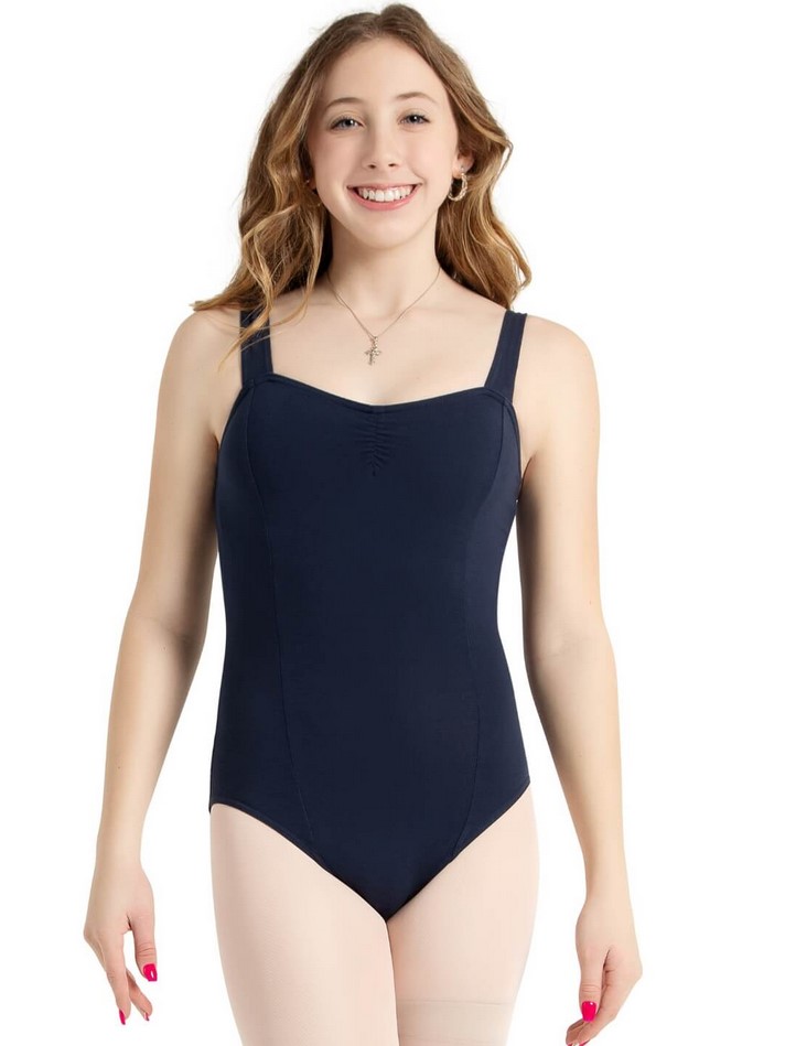 - Wide strap princess tank leotard