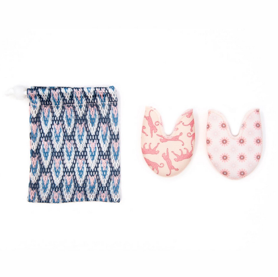 A thin layer of gel sandwiched between two layers of fabric help alleviate pressure on the toes while adding minimal bulk to pointe shoes so the dancer can still feel the floor. Each pad can be flipped to accommodate slightly different sizes so the pads won’t peek out of the shoe. A small 4”x5” mesh bag is included to store pads and accessories.
