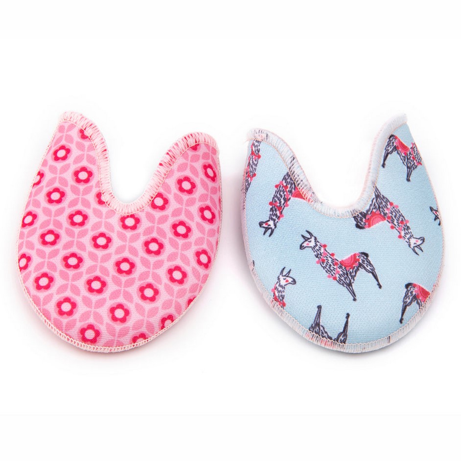 Gel toe pads that are reversible and feature two fun prints or colors!