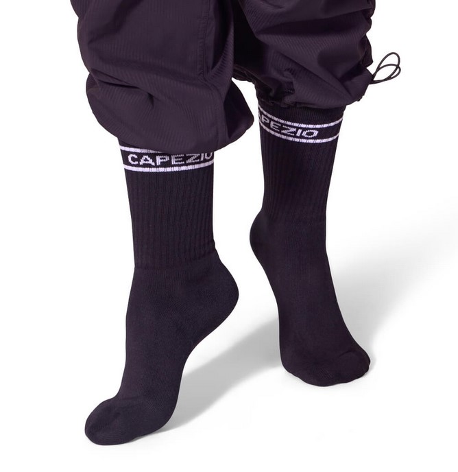 Step into classic comfort in the Unisex Varsity Crew Sock. These vintage-style crew socks are made of a heavenly cotton/poly/lycra blend and are perfect for lounging or on the go. Featuring a sleek Capezio logo in black that is sure to stand out, and cushioning that will keep your feet energized all day long. Wear them tall or scrunched with your favorite tap shoes or sneakers for the perfect look!