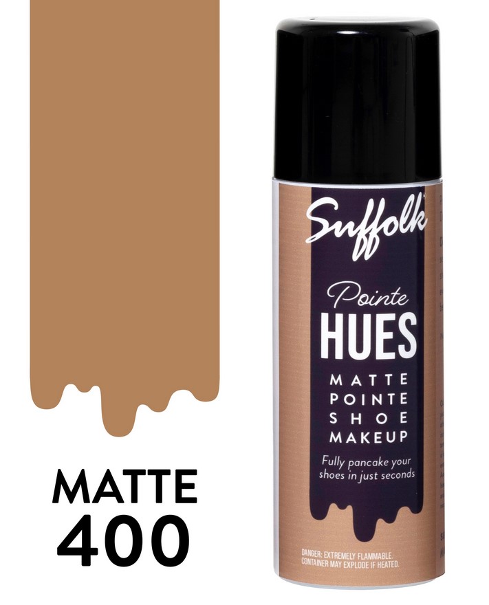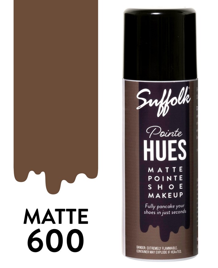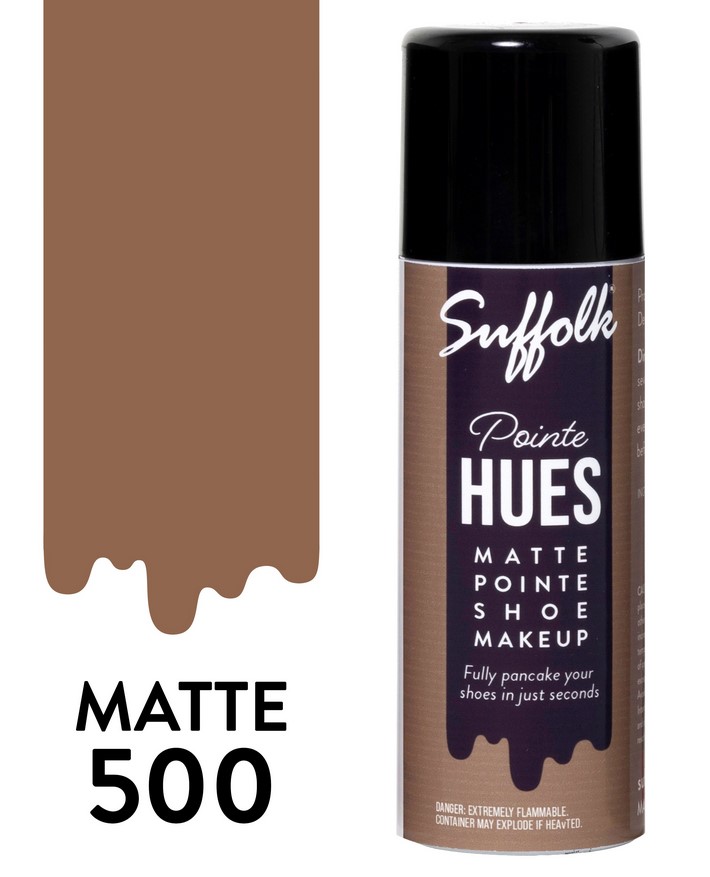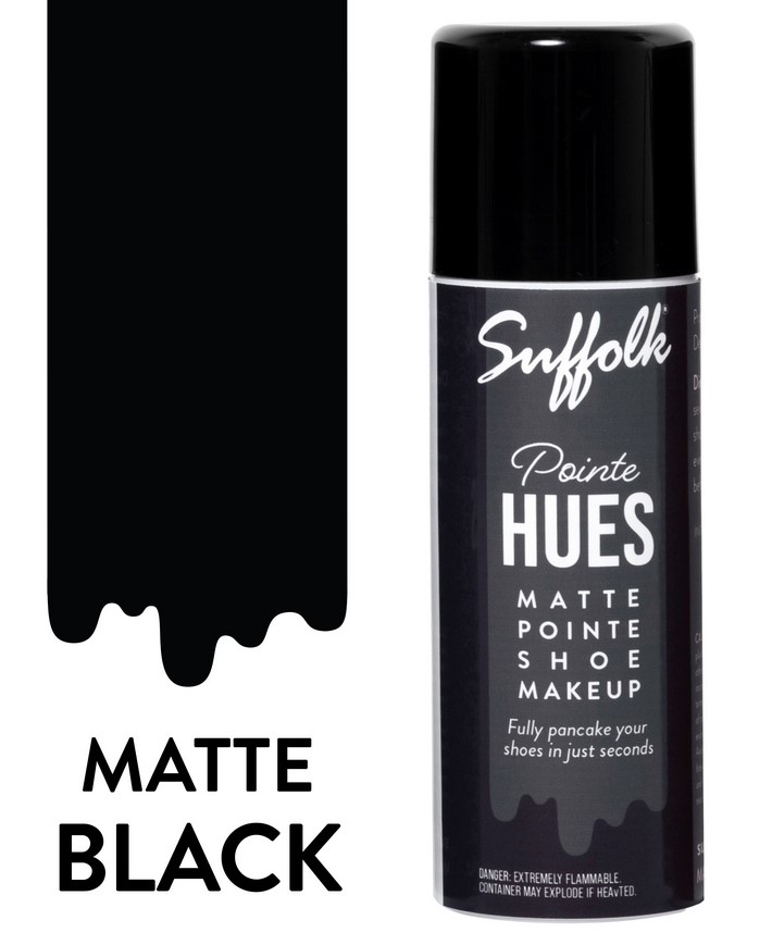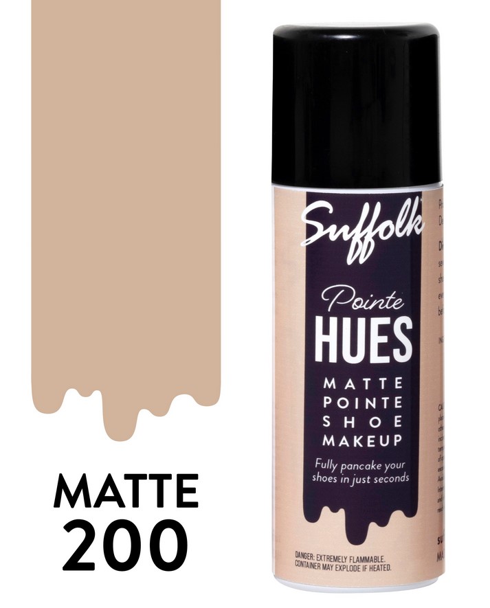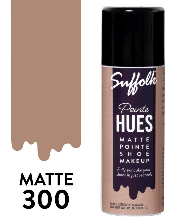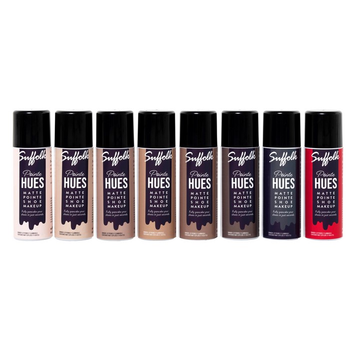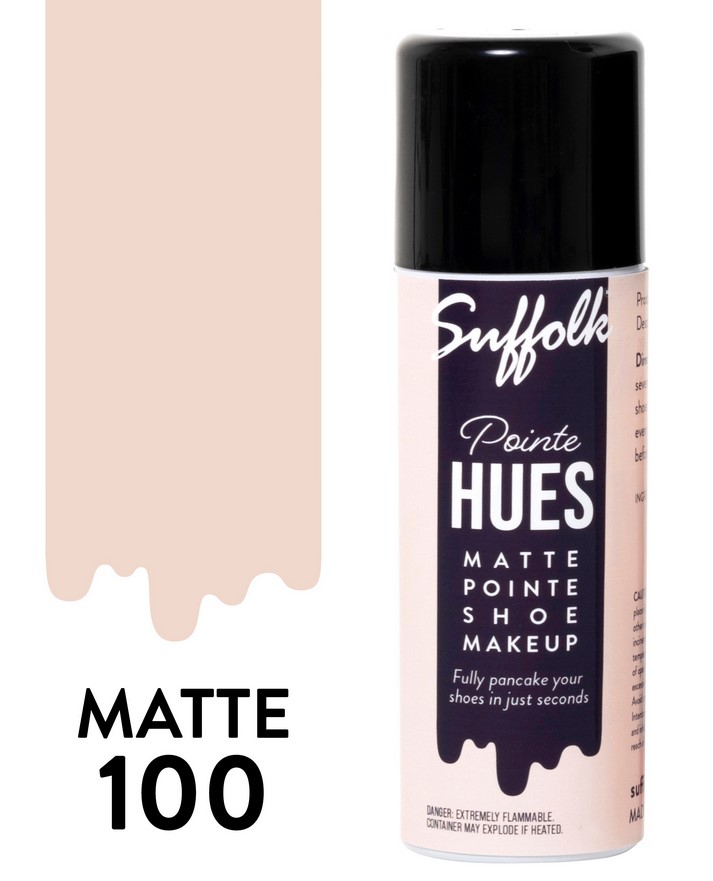 Suffolk® Pointe Hues is a quick and simple way to dye or mattify the satin fabric of your pointe shoes. Using innovative bag-on-valve technology, the Pointe Hues spray bottle allows you to fully pancake your shoes in seconds. The 100 ml bottle contains enough product to dye several pairs of pointe shoes. Made in the USA.