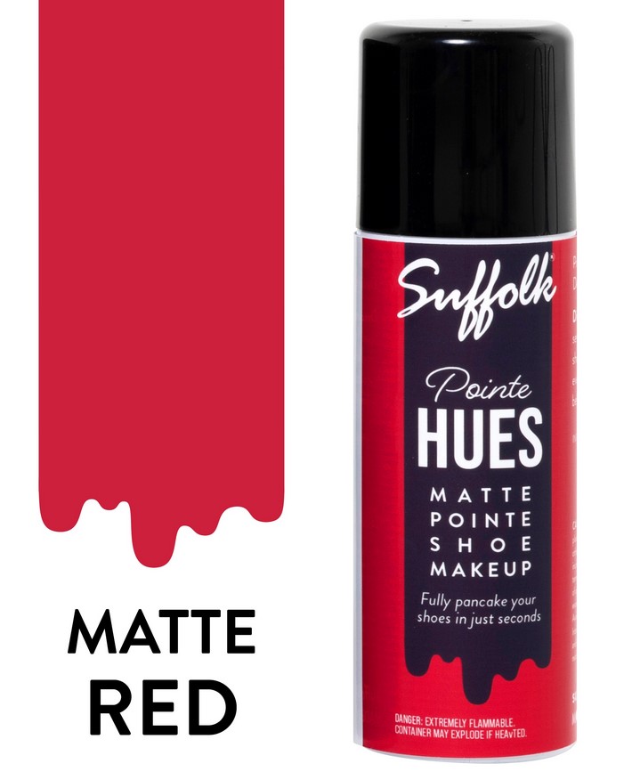 Directions: Shake well. Hold can several inches away from pointe shoes and spray all around for an even coating. Allow to dry for minimum of 1 hour before wearing. Available in 6 skin tone shades, plus black and red!