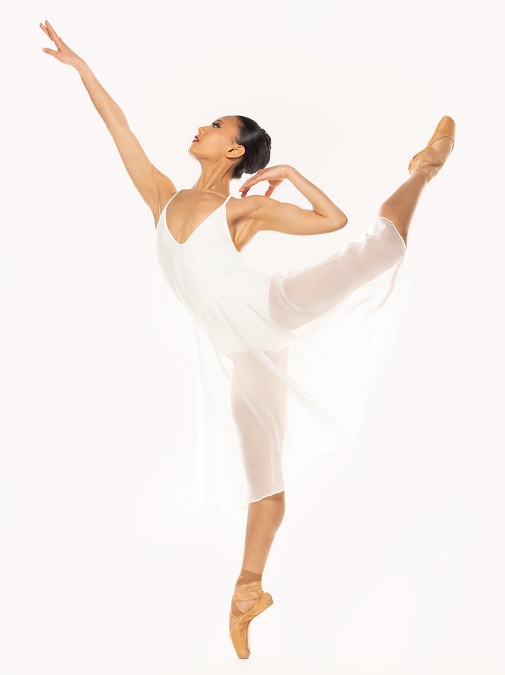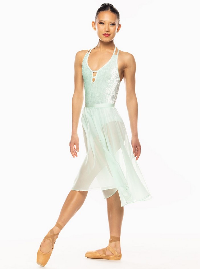 Step into the spotlight and shine bright in the Chiffon Rehearsal Skirt, a shimmering marvel designed to elevate your performance. Crafted from luxurious chiffon with a two-tone iridescent finish, this 3/4 circle skirt captures light beautifully, adding a touch of elegance to every movement making it perfect for the studio and the stage.